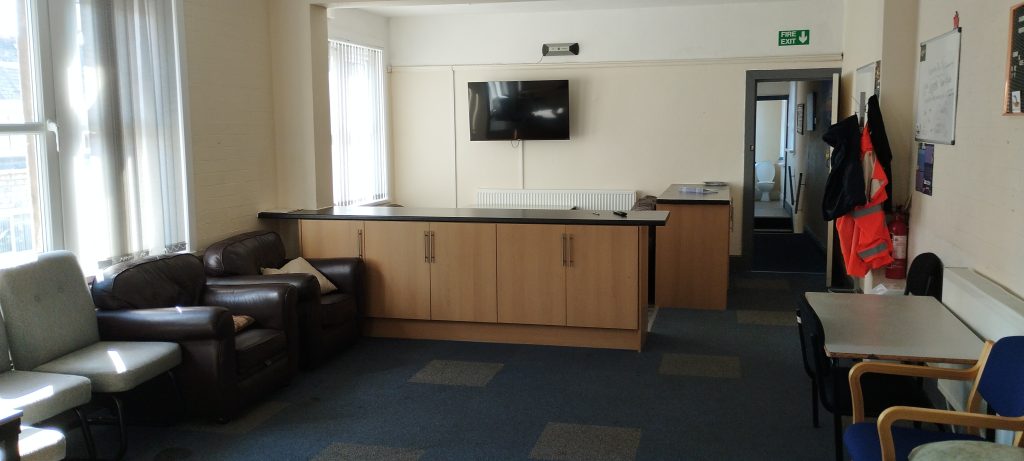 The East Wing is a multi purpose room that can be used both with or without tables. There is a TV with HDMI connection and also a small separate kitchen at one end for tea and coffee.