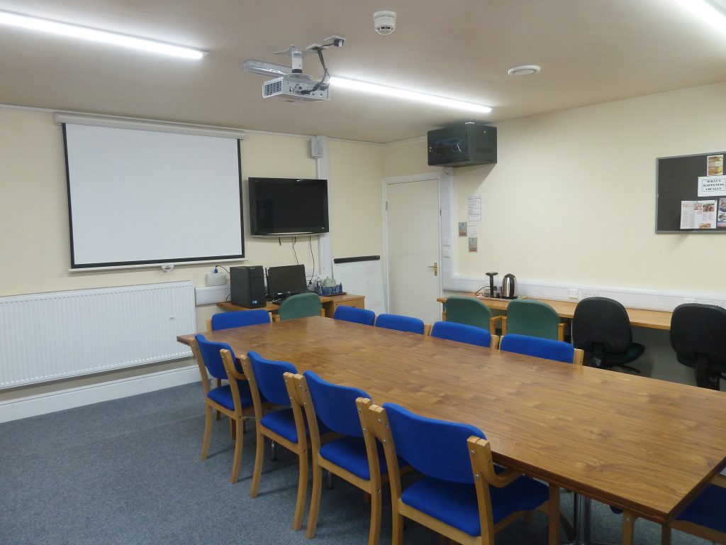 The Meeting Room is the ideal space for meetings. There is a projector and screen as well as a TV with HDMI connection. The centre table can seat twelve people which makes it perfect as both a room for learning as well as a conference room.